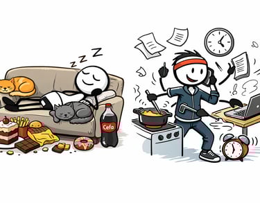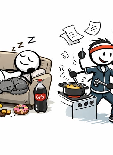 Dann gibt es die andere Seite. Die Phase, in der ich nicht im Defizit bin, sondern eher … nennen wir es großzügig: Energetisch sehr gut versorgt. In diesen Zeiten verwandelt sich mein Körper in ein Faultier auf Baldrian. Nach dem Essen werde ich schwer, ruhig, schläfrig. Mein Nervensystem schaltet in den Verdauungsmodus, mein Blutzucker fährt Achterbahn und mein Organismus denkt offenbar: „Aktivität ist überbewertet. Wir regenerieren jetzt.“